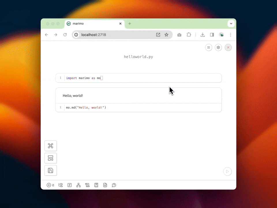 Think of marimo.new as your own personal scratchpad for experimenting with code, data, and models and for prototyping tools, available to you at all times and on all devices.